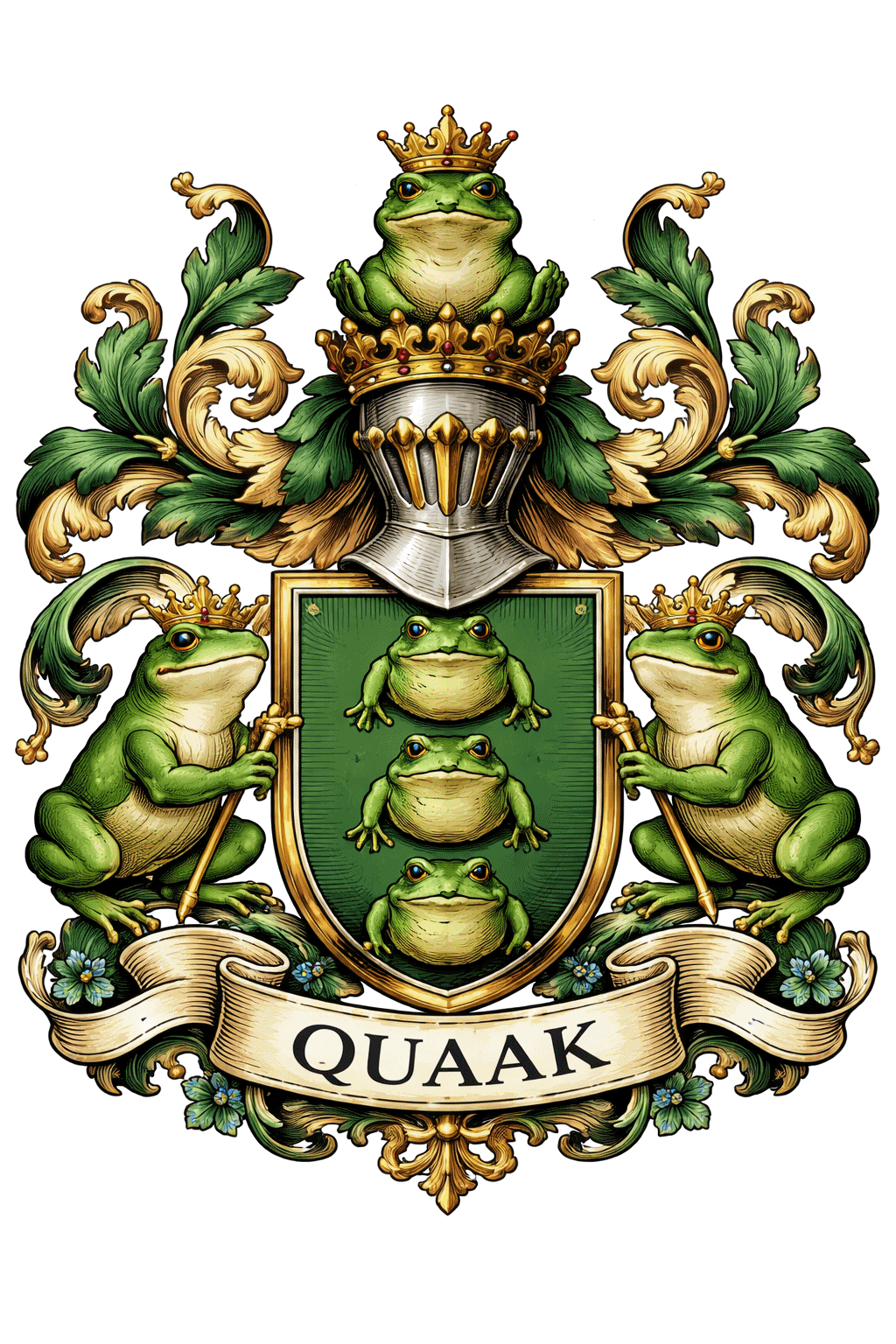 van onze familie -naam “Quaak” en de welbekende kikker o.t.w. frog.